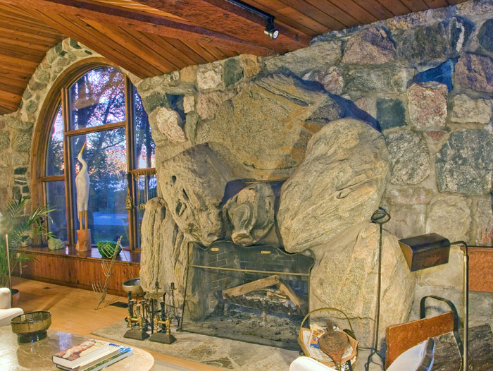 Earl Young’s meticulous attention to detail may not be more evident than when it came to fireplaces and windows. Photo © copyright by Mike Barton.